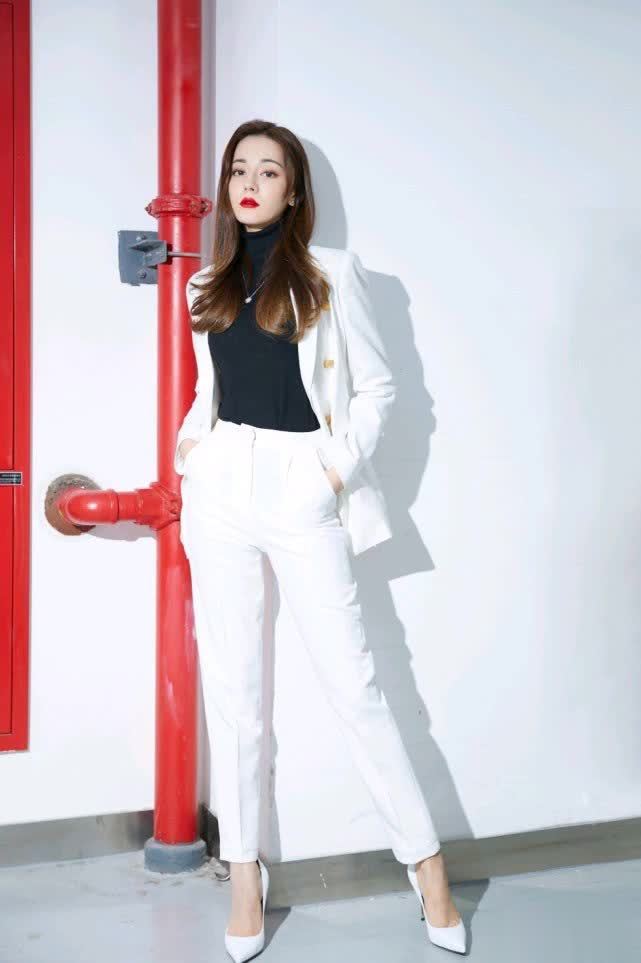 当她穿上白色西装的样子又是完全不一样的,瞬间霸气了不少,裤子是高腰的款型,更是起到了显高的效果,腿型很修长,气场也很足,十足的女强人既视感。