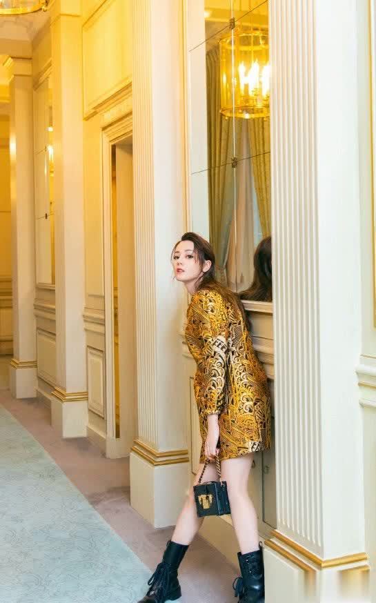 说真的,这一条金色连衣裙全靠迪丽热巴的颜值和身材在支撑,普通人也不敢轻易尝试。金色连衣裙+马丁靴的穿搭,构成了经典的黑色与金色搭配,看着贵气十足,而手拿的一个黑色包包,有一种独特的高贵气质。虽然裙子会显老,但热巴也穿出了时尚范儿,让人十分佩服了。